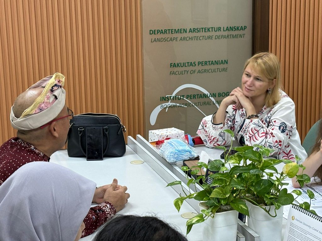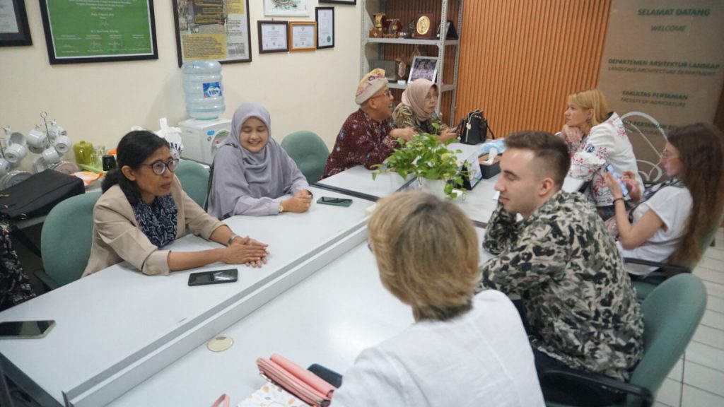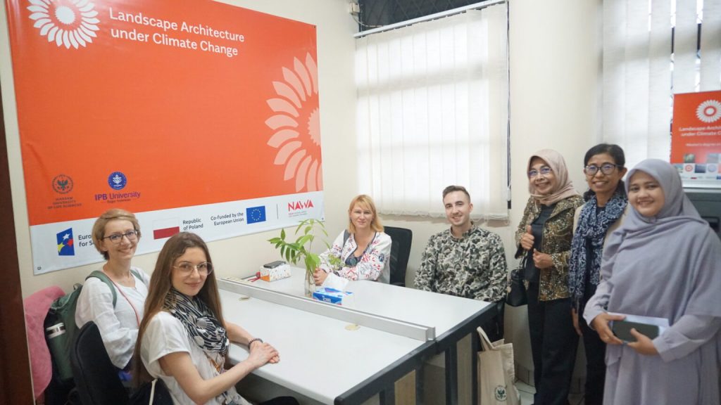 Polska delegacja, składała się z prof. dr hab. Marty Mendel jako I Prorektorki, prof. dr hab. Justyny Franc-Dąbrowskiej jako Dyrektorki Szkoły Doktorskiej, mgr Wojciecha Ciechanowskiego oraz mgr Karoliny Lipskiej z Biura Doskonalenia Dydaktycznego. Delegacja została oficjalnie przyjęta w Katedrze Architektury Krajobrazu na Wydziale Rolniczym (Faperta) IPB University. W spotkaniu uczestniczyli przedstawiciele władz wydziału, kierownictwo katedry oraz zespół dydaktyczny kierunku architektura krajobrazu. Dyskusja koncentrowała się na omówieniu programu podwójnego dyplomu realizowanego wspólnie IPB University oraz możliwościach dalszego rozwoju współpracy. Rozmawialiśmy m.in. o organizacji wykładów gościnnych, podwójnych studiów doktorskich oraz udziale studentów w kursach letnich oraz współpracy przy Międzynarodowym Sympozjum Zrównoważonego Projektowania Krajobrazu (ISSLD).